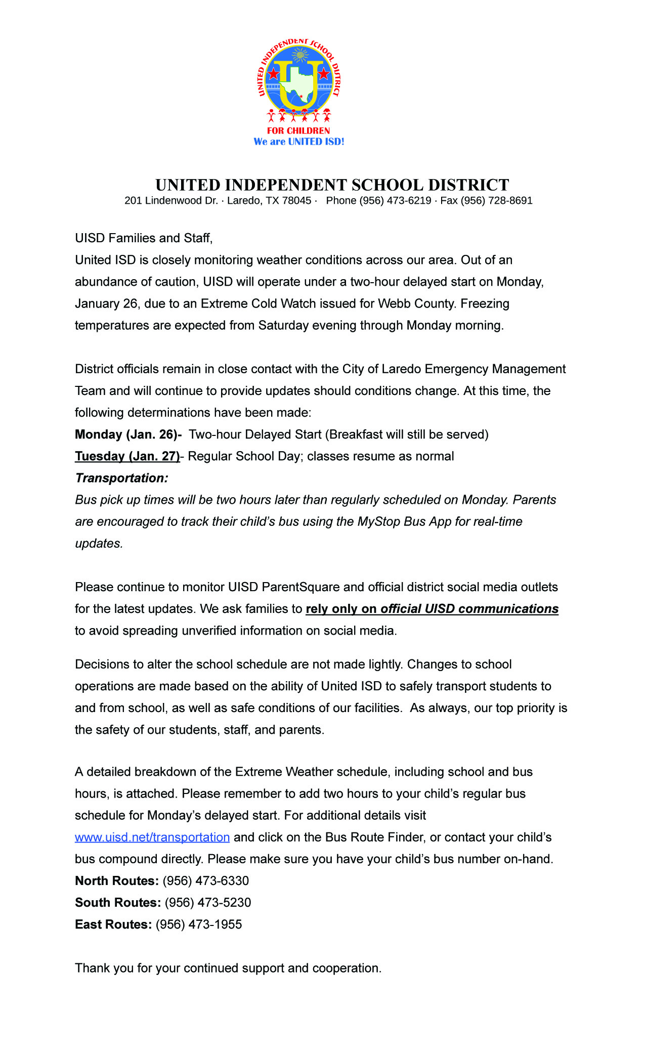 United Independent School District (UISD) announced major updates for the 2026-2027 school year, including the opening of student registration and the launch of a new district-wide virtual learning